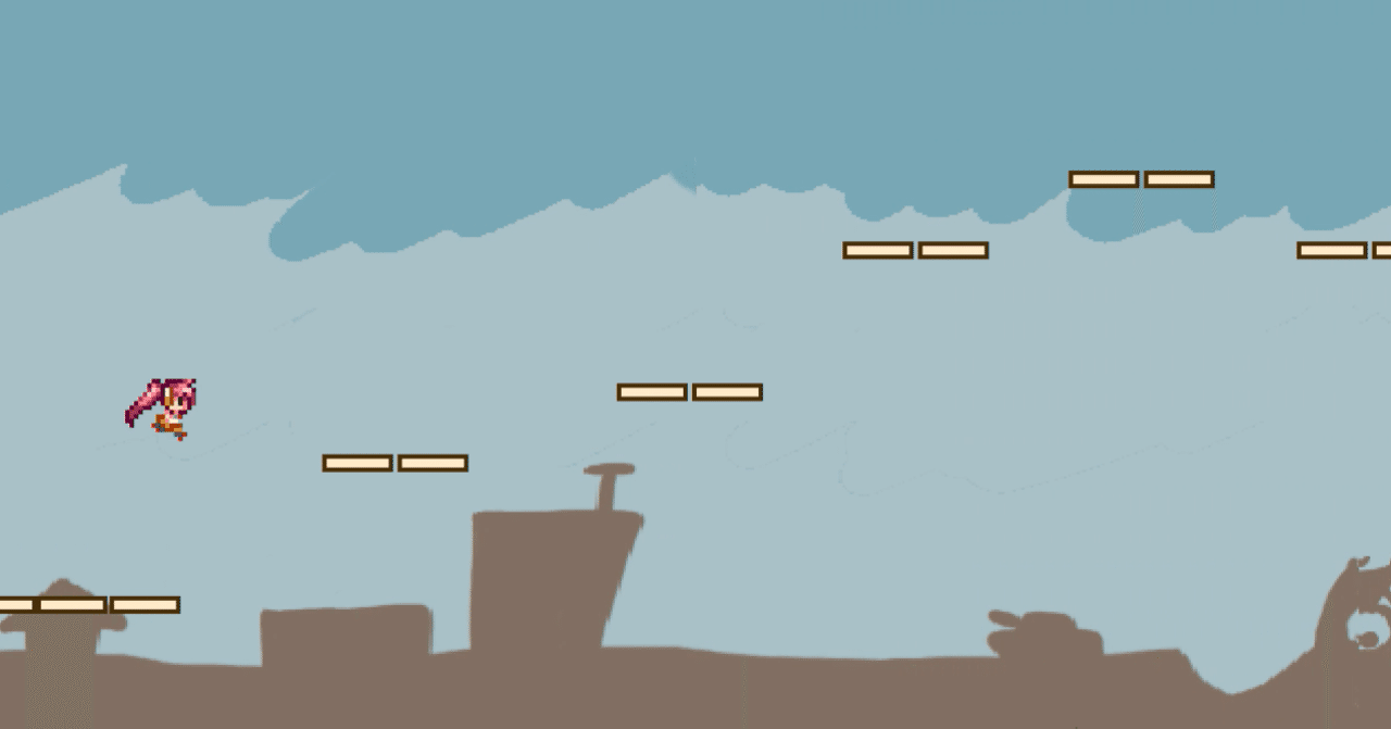 ジャンピング ループ ジャンプイット 走れ! バッグス・バニー バッグス・バニーがジャンプして走っていくゲームです。 マウスでバックス・バーニーを移動させて、マウスを左クリックしてジャンプします。 ステージにはニンジンがあり獲得すると得点を取得できます。 でっかいニンジンを獲得するとパワーアップすることができ通常より高くジャンプするリムル ジャンプ! ユニークスキル跳躍者(ハネルモノ) GAME START! 今回はラン&ジャンプ系ゲームの作り方を紹介します。 手順としては以下の通りです。 1 プレイヤーを表示する。重力で落下させる 2 床を表示する。プレイヤーが床の上に乗れるようにする 3 プレイヤーの横移動を実装する。それに追従して画面をスクロールさせる 4
